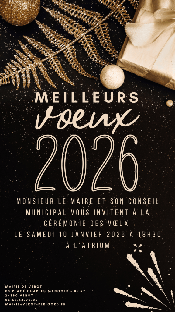 Monsieur Le Maire, Pierre JAUBERTIE & l’ensemble du conseil municipal de la commune de Vergt ont le plaisir de vous inviter à la cérémonie des vœux qui se tiendra