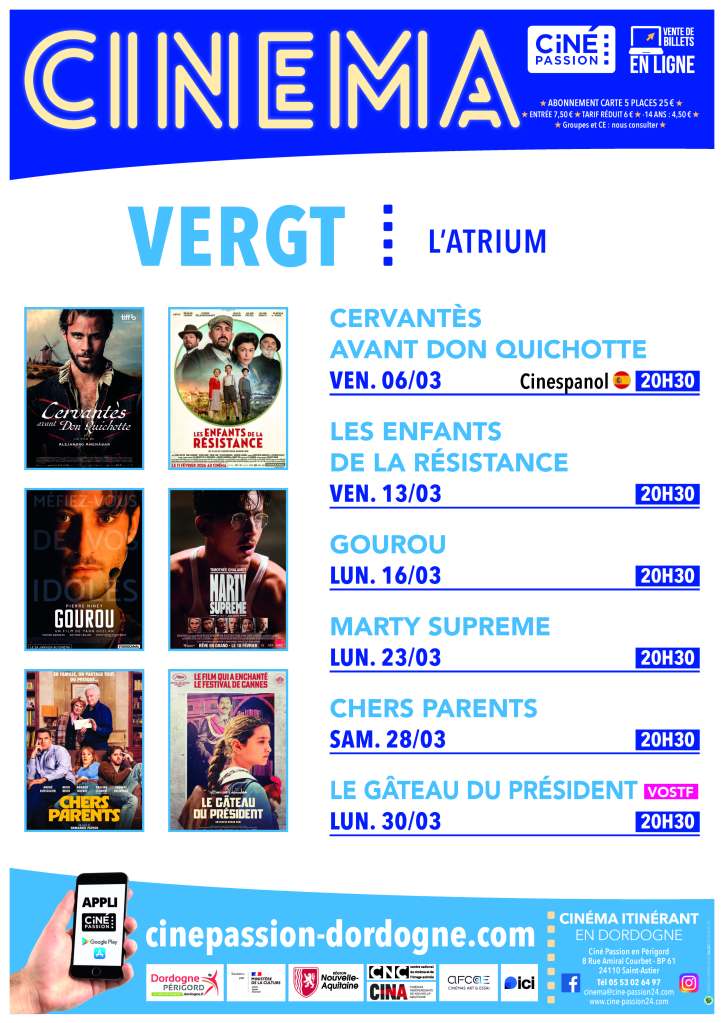 Le programme cinéma de mars 2026 février 22, 2026février 23, 2026gillesri Pour plus d’informations : aller sur le site de Ciné Passion ci-dessoushttps://www.cinepassion-dordogne.com/films/ Partager : Partager sur X(ouvre dans une nouvelle fenêtre) X Partager sur Facebook(ouvre dans une nouvelle fenêtre) Facebook J’aime chargement… Similaire
