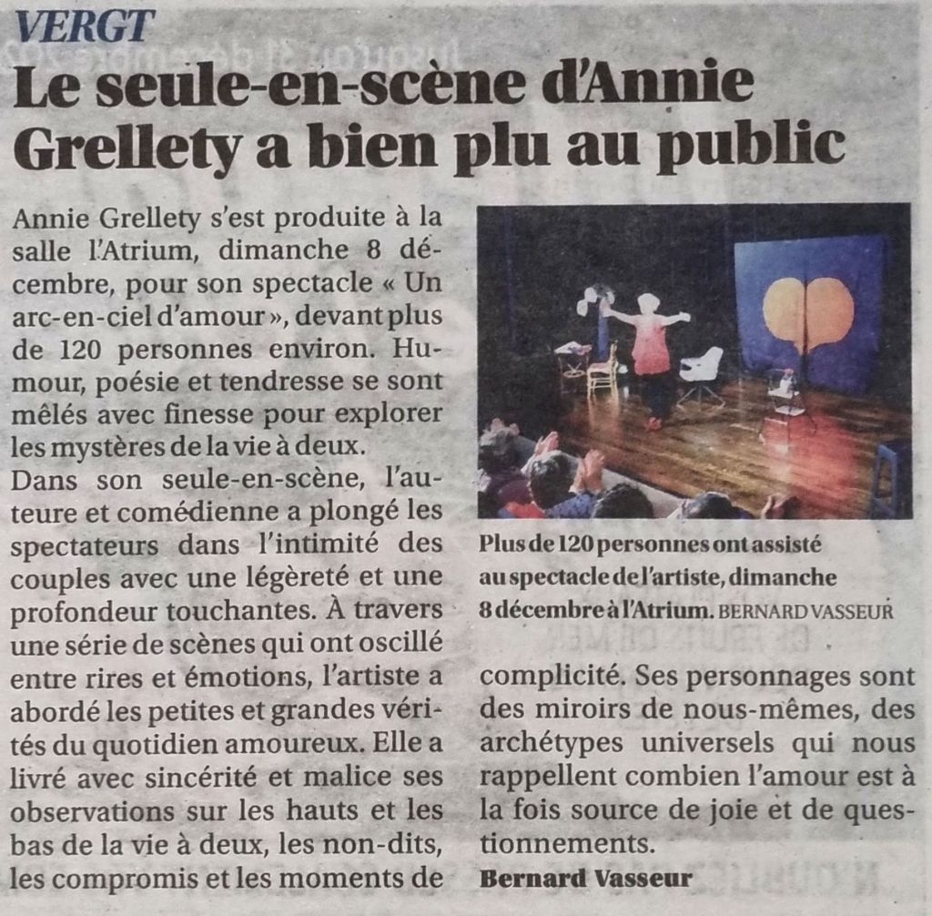 La salle était comble, il manquait même quelques fauteuils. Un public conquis par la troupe du théâtre de la Cendre qui nous aura fait passer une très bonne après-midi dans la bonne humeur, le rire et dans une ambiance conviviale grâce aux bénévoles de la ligue contre le cancer.
